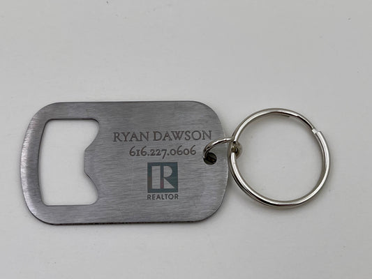 Stainless Steel Bottle Opener Keychain, Custom Laser Engraved - Quantity 50