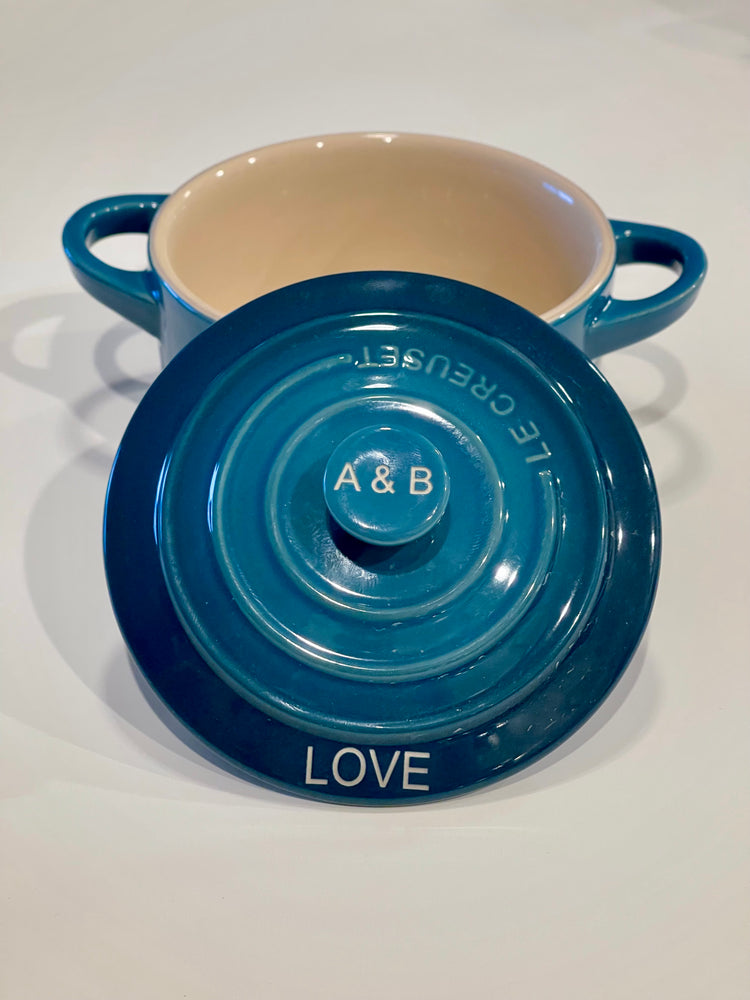 Let us engrave your ceramic or cast iron Dutch Oven. Le Creuset, Lodge, Staub, Milo, Emile Henry, Marquette Castings, Dansk, Cuisinart, Great Jones, Caraway, Misen, Denby, Vermicular, KitchenAid, Tramontina, Our Place, and Italic.